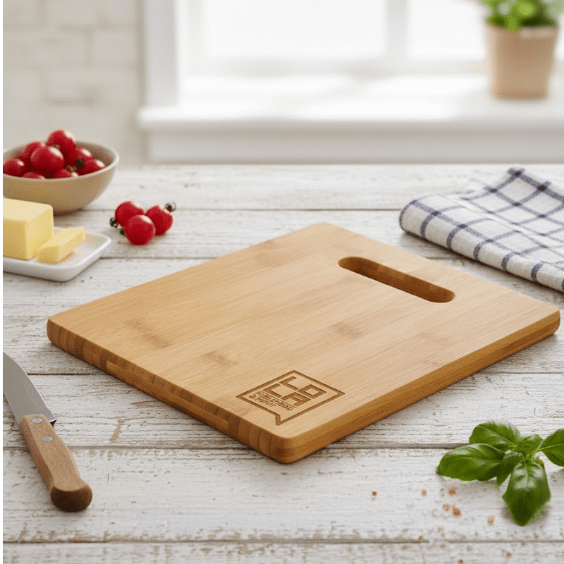 Set de Corte Bamboo. Tu logo en la vanguardia eco-friendly.