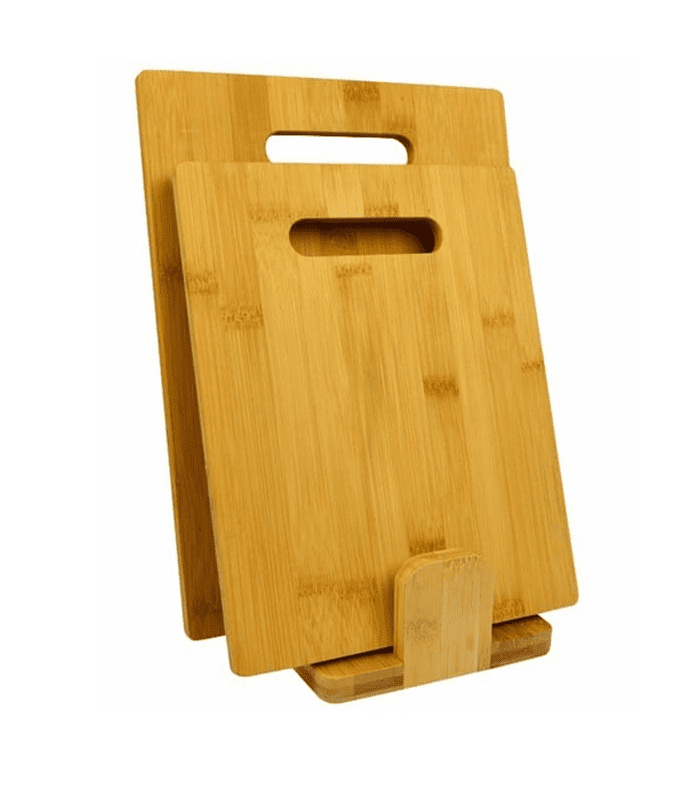 Tabla y utensilios de bambú. Tu logo grabado para un regalo que comunica sostenibilidad y alta calidad.