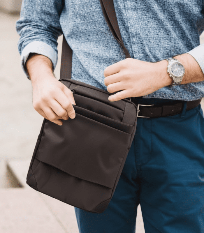 Correa larga ajustable.