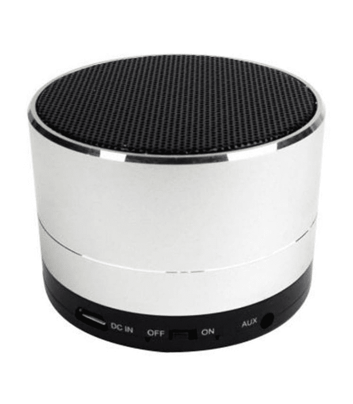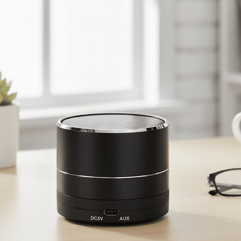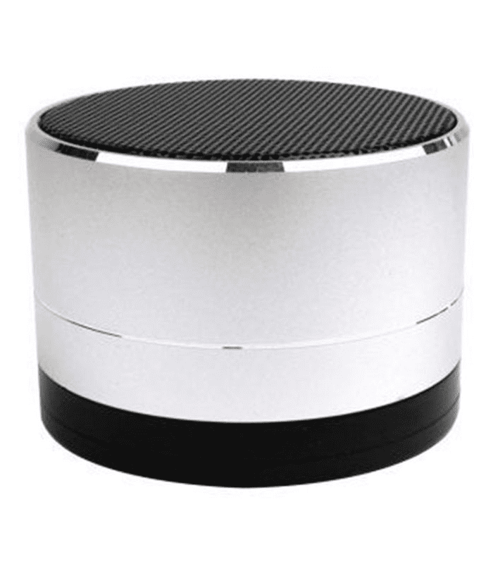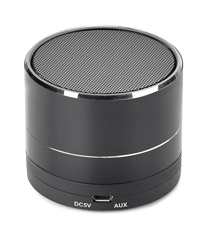 Bocina con forma cilíndrica. Tu logo grabado en el cuerpo de metal.