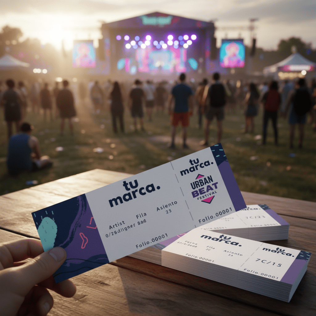 Impresión de boletos para eventos y rifas. Incluye numeración secuencial y suaje para el talón. Máxima seguridad y orden.