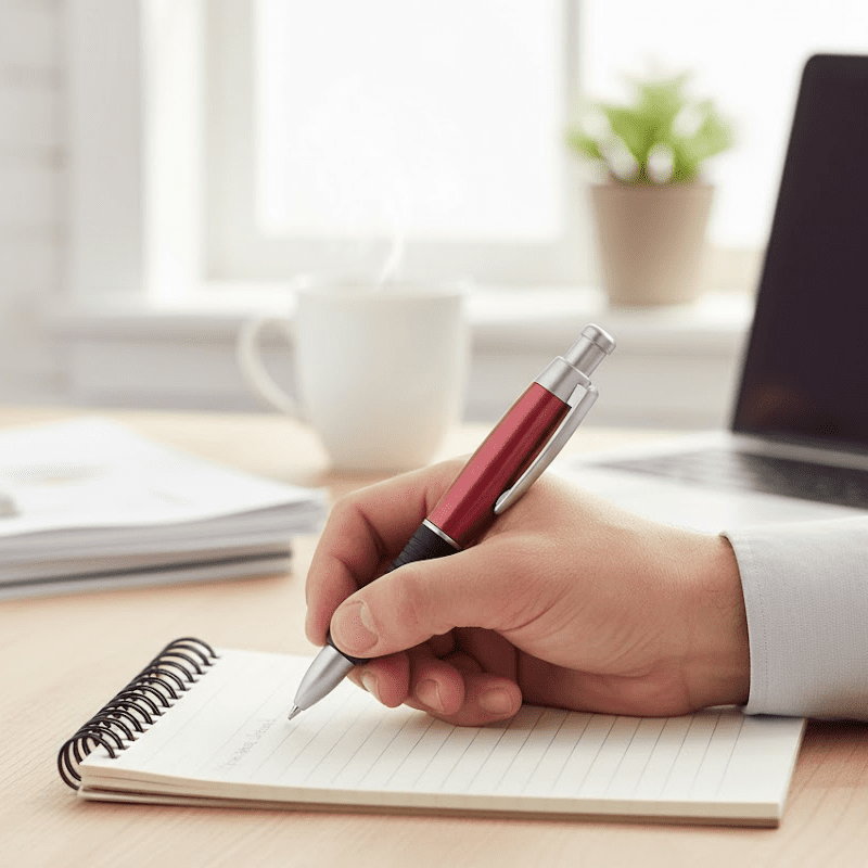 Forma Ergonómica. Imprime tu logo en el bolígrafo curvo.