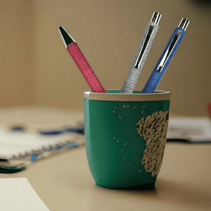 Cuerpo de metal con detalles sutiles de color en la punta o el clip. Elige el color que coincida con tu identidad y grabamos el metal.