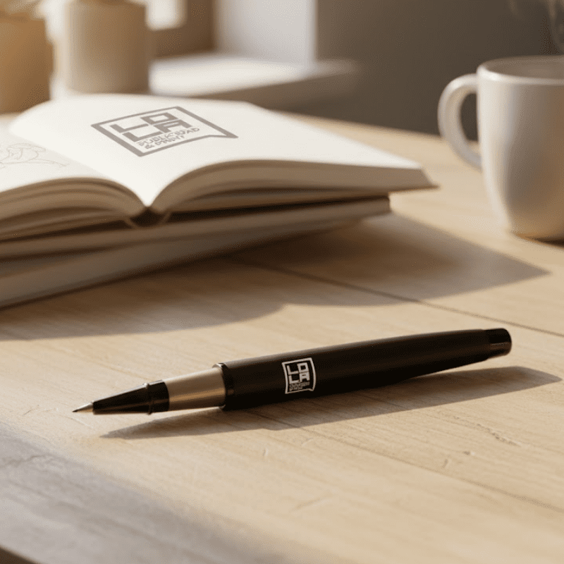 Acabado negro mate completo. Tu logo grabado a láser revelará el metal plateado, creando un contraste de alta sofisticación y seriedad.