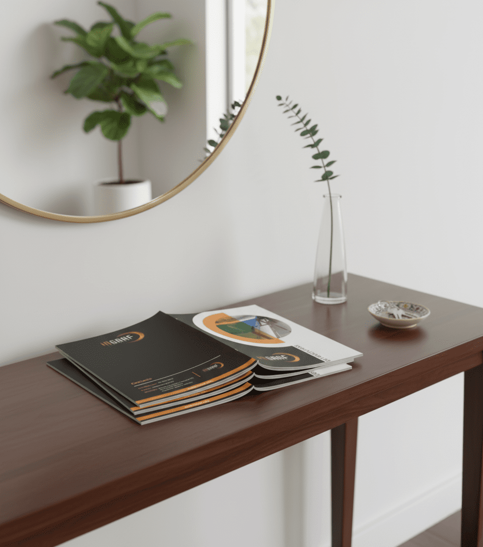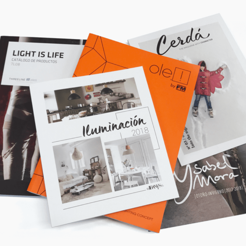 Encuadernado Wire-O o pegado. Papeles gruesos y acabados de lujo para presentar tu catálogo de manera formal y duradera.