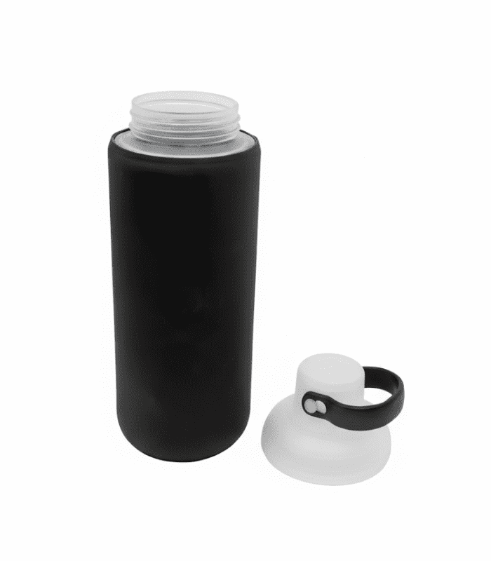Tapa en rosca con correa de silicón para sujetar.