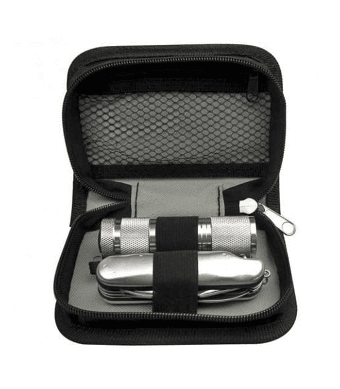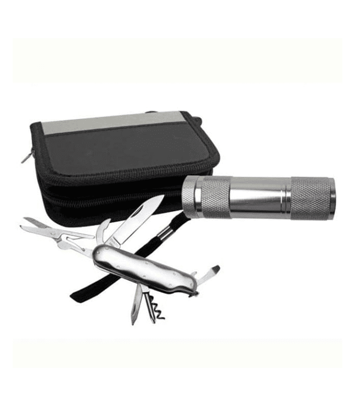 Incluye linterna y navaja multifunciones.