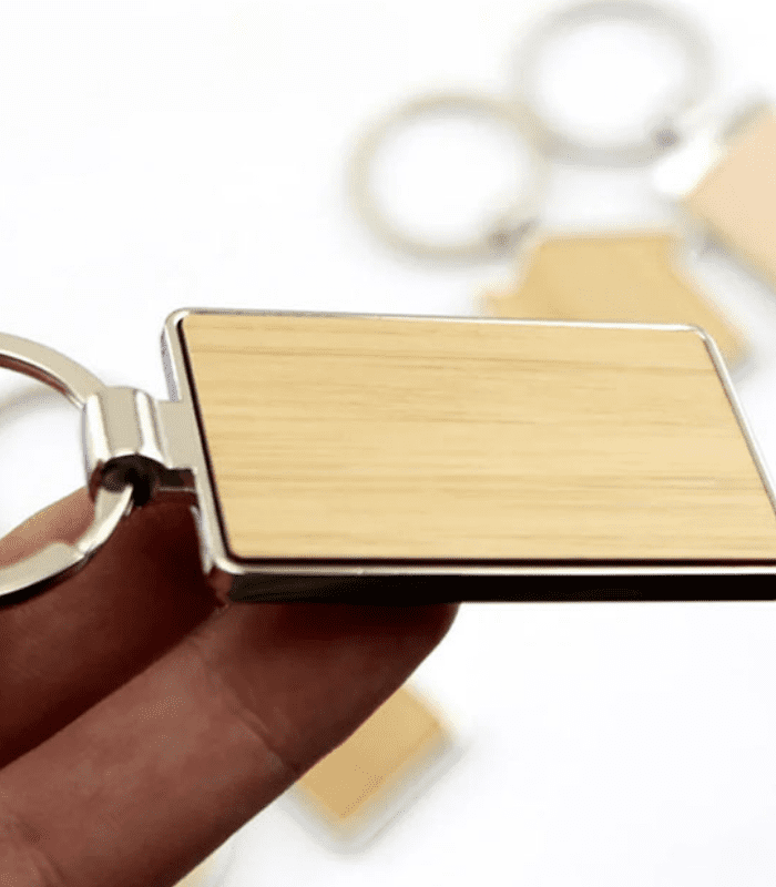 Llavero Bamboo Rectangular. Tu logo en un look moderno y eco.