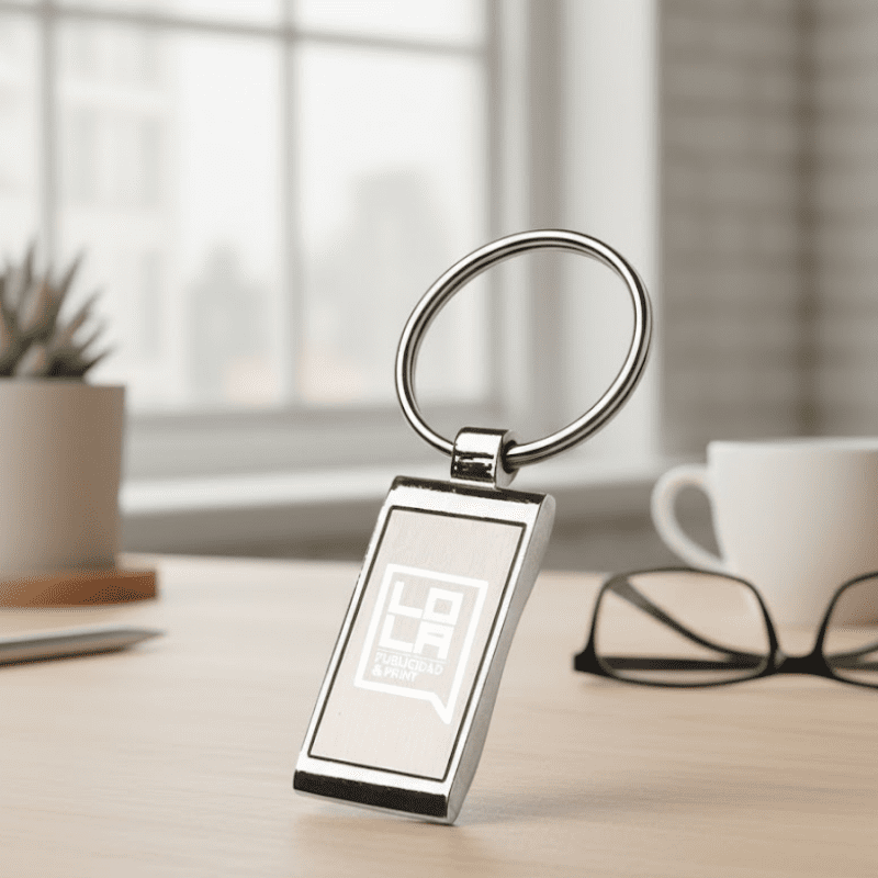 Llavero metálico tradicional. Tu logo grabado para un look de negocios.