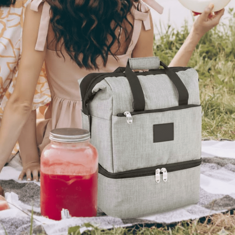 Disimula su función térmica con un diseño de bolso. Tu logo bordado para un look ejecutivo