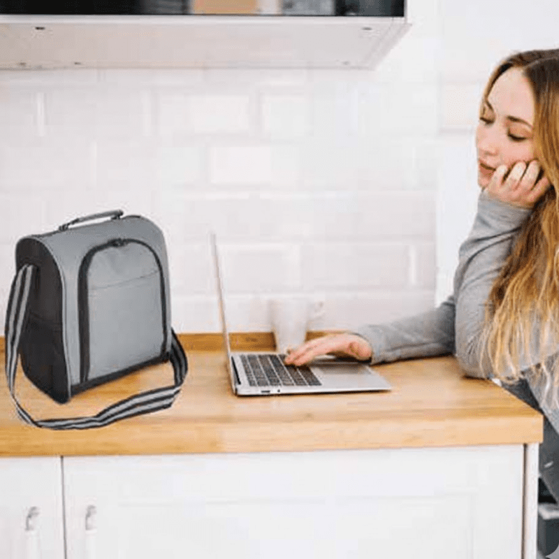 Su forma optimiza el espacio para tuppers. Tu logo serigrafiado en la cara frontal.
