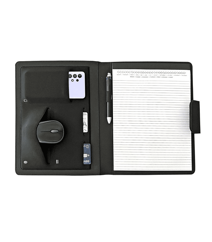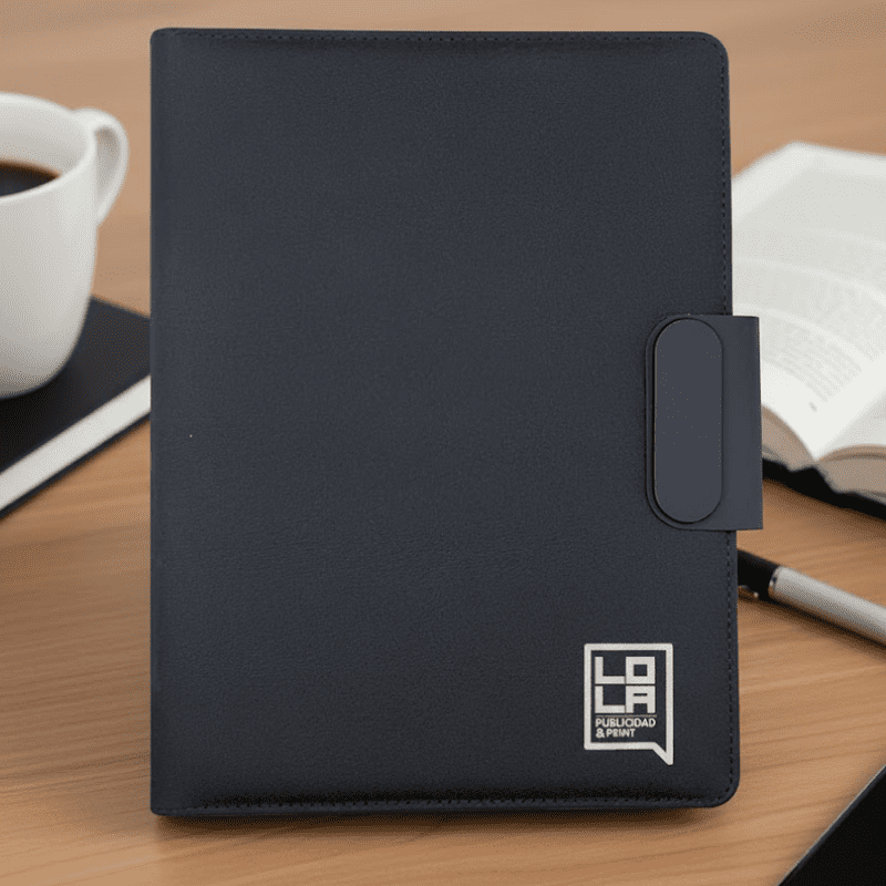 Incluye clip metálico para hojas sueltas. Tu logo grabado o impreso.