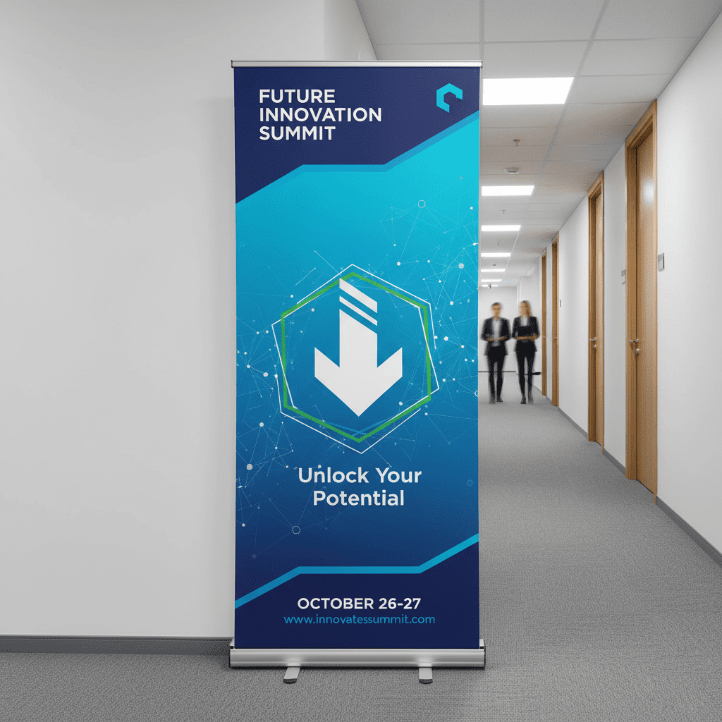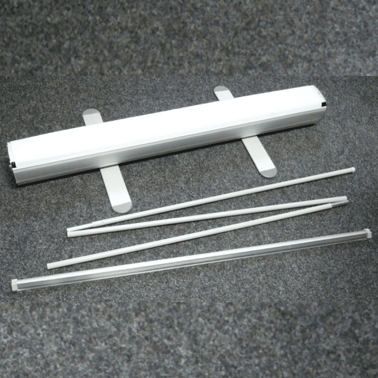 La solución más rápida para exhibir tu marca o promoción. Gráfico protegido en la base de aluminio. Transporte sencillo.