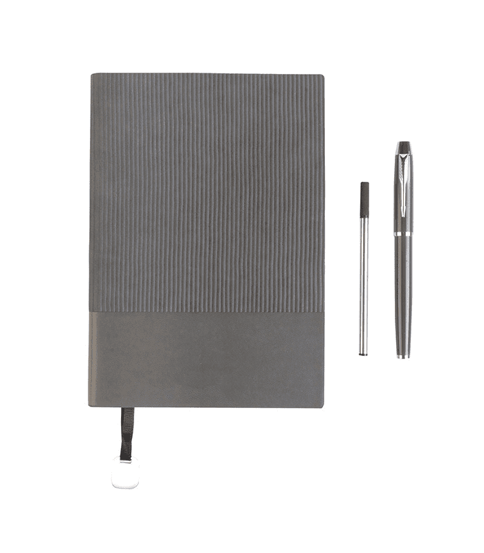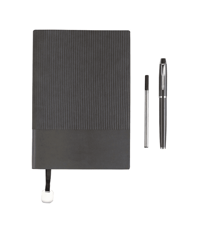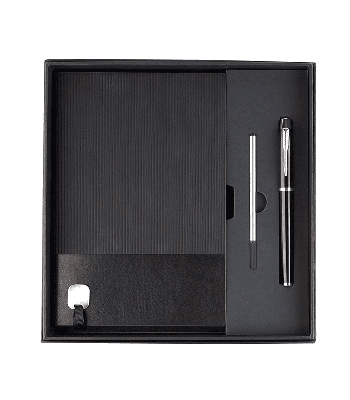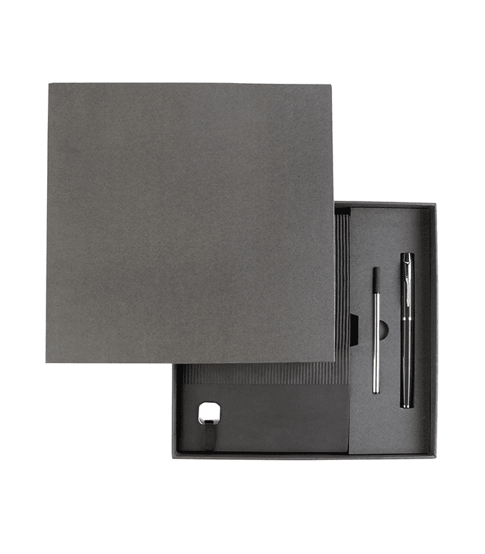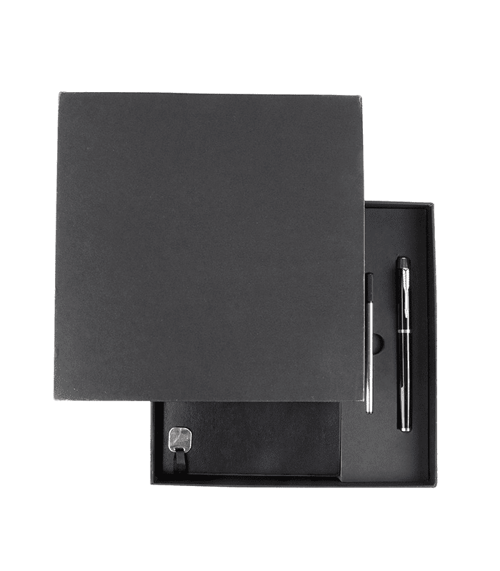 Incluye libreta, bolígrafo y estuche de presentación.