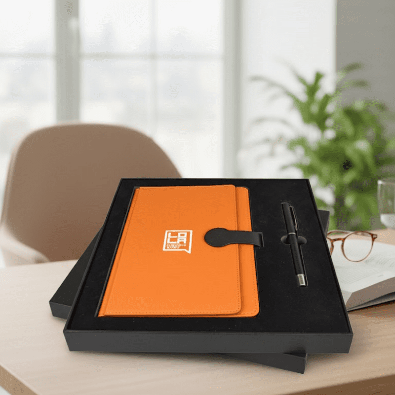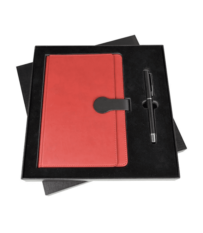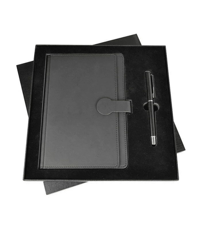 Incluye libreta, bolígrafo y estuche de presentación.