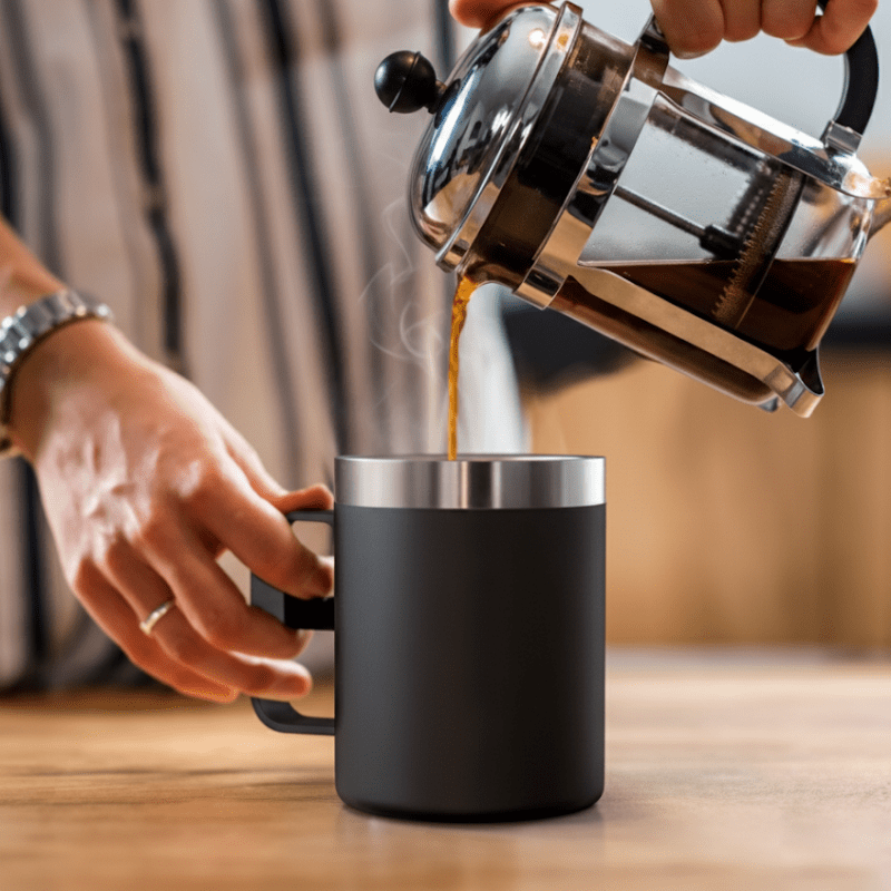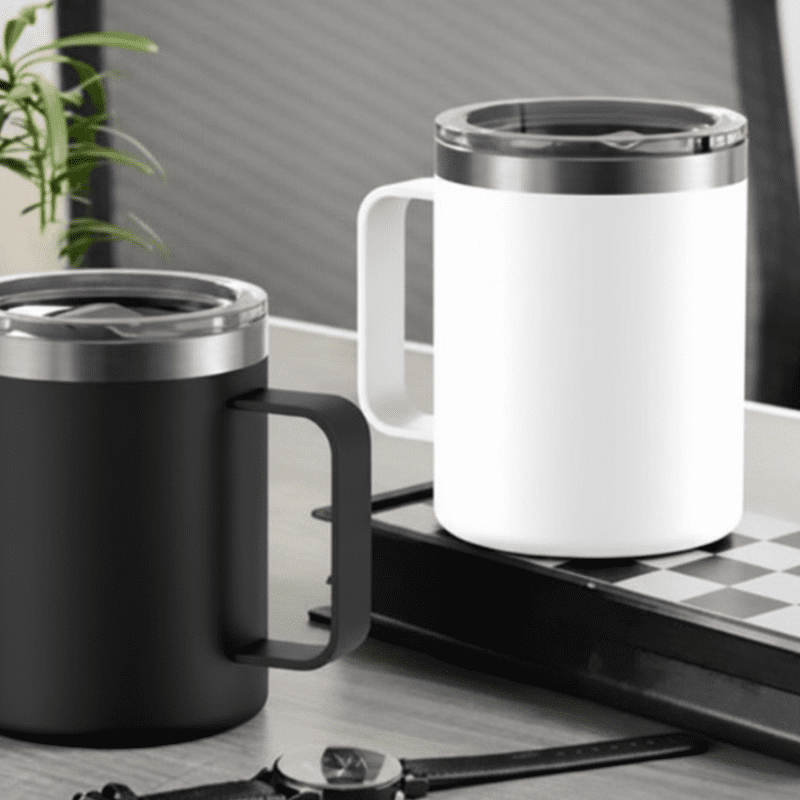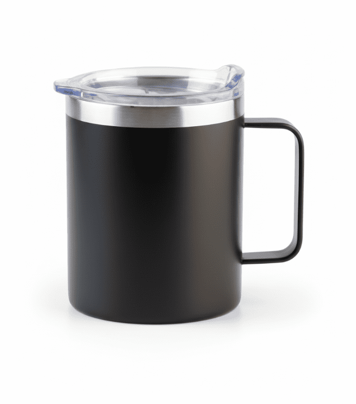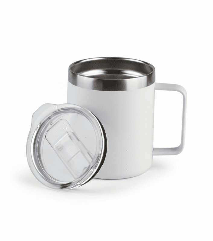 Incluye cuchara de cerámica a juego. Tu logo sublimado o serigrafiado en un kit de oficina completo.