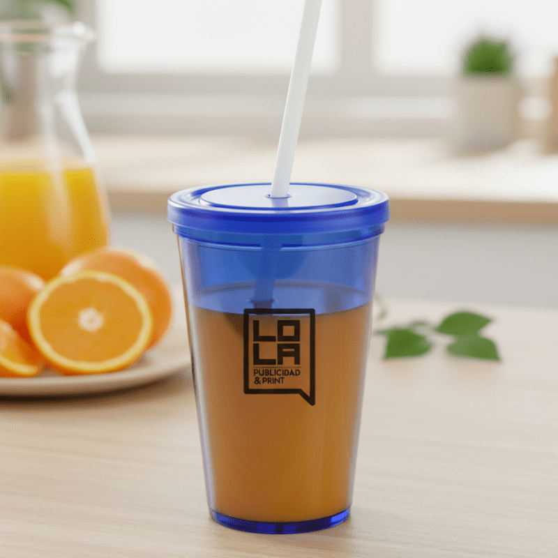 Vaso metálico de viaje con acabados de color. Diseño vibrante.