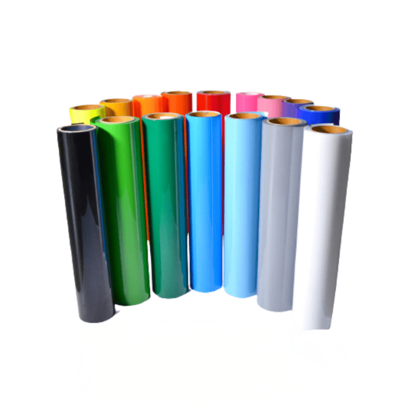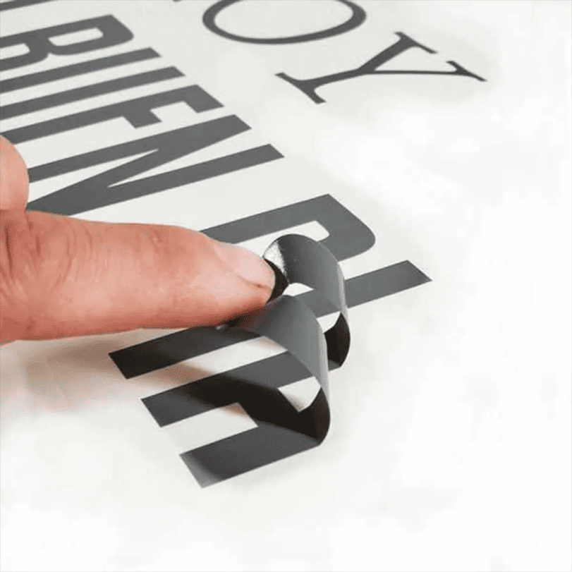 Vinil de color sólido recortado según el diseño, sin impresión.